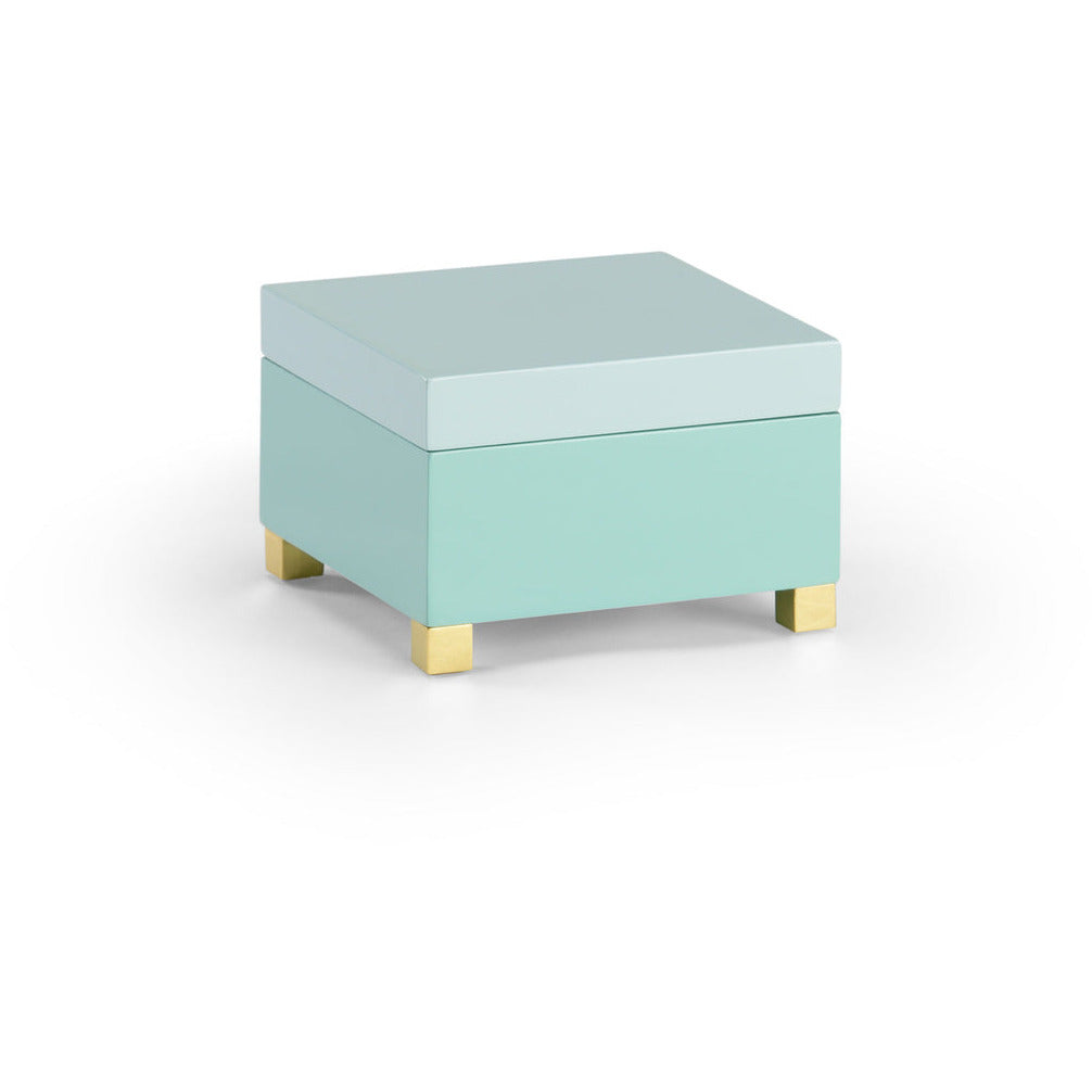 Mint green and seafoam lacquered wood box with hinged lid from Chelsea House. 6"w x...