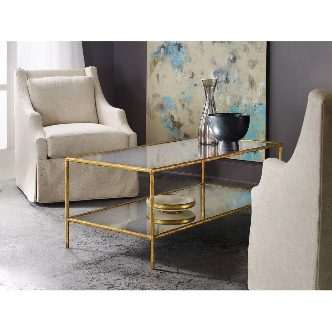 Organic Cocktail Dimensions: 50w x 24d x 19h Features: Mirror Glass Top & Bottom Materials: Gold Leaf Finish...