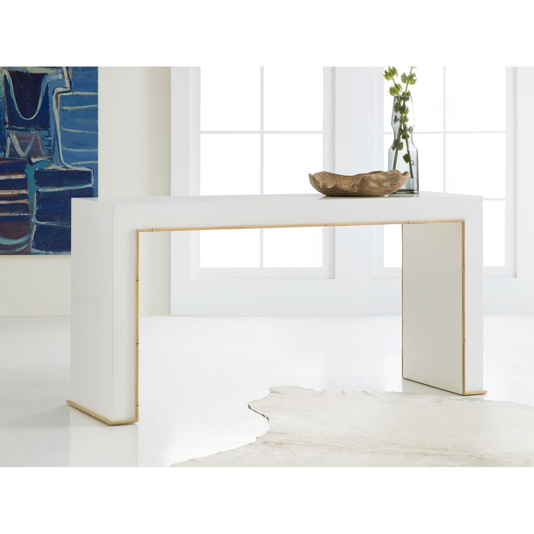 Metal and Acrylic Console Dimensions: 56w x 11.5d x 35.5h Features: Buffed White Acrylic Drop-In Top Materials: Satin...