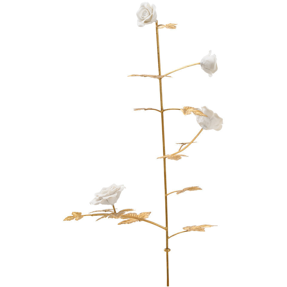 Chelsea House white porcelain roses on an antique gold leaf iron stem. 15"w x 28"h. Brought...