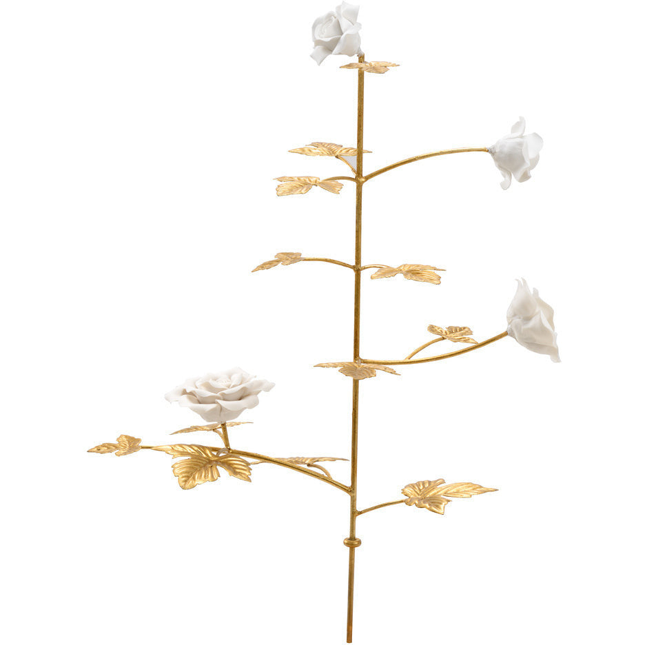 Chelsea House white porcelain roses on an antique gold leaf iron stem. 16"w x 23.5"h. Brought...