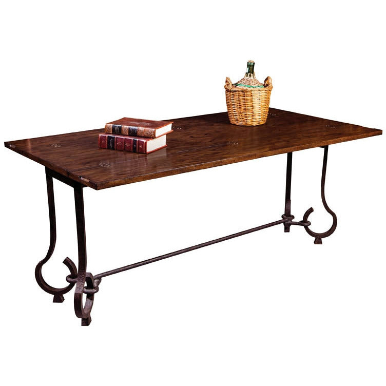Continental oak flip top table with a Renaissance oak finish is held up by iron...