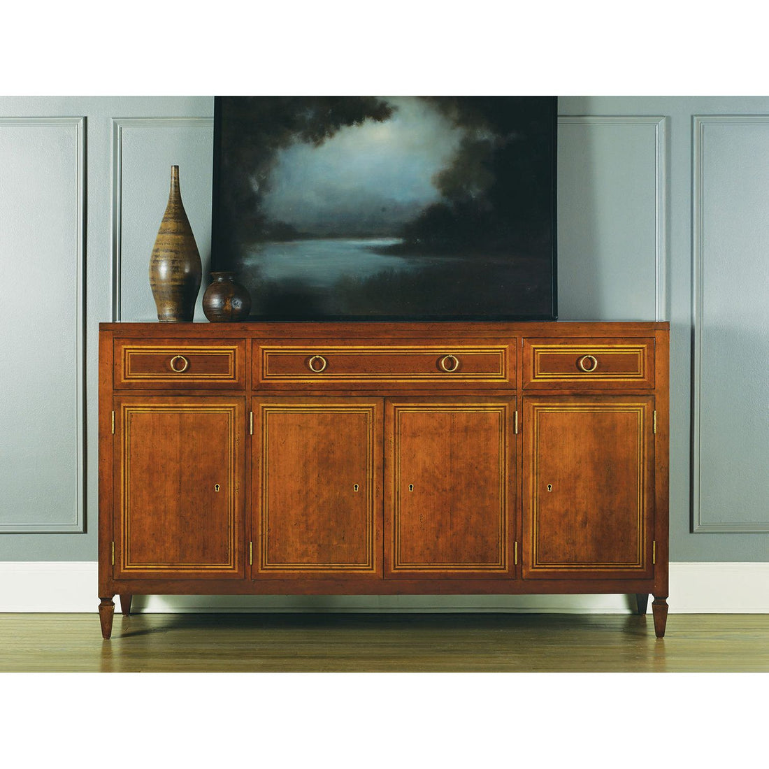 Covington Credenza Dimensions: 88w x 22d x 32h Features: Brass Hardware Materials: White Painted Finish; Gold Paint Accents...