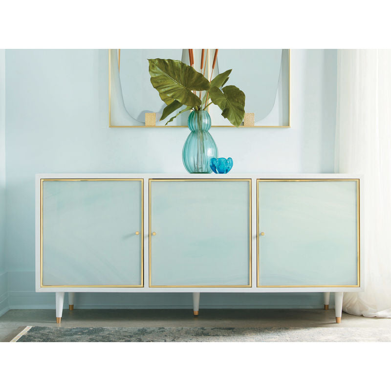 Seaglass Three Door Credenza Dimensions 70w x 18.5d x 32h Features: Brass Drawer Surrounds Printed Acrylic Seaglass...