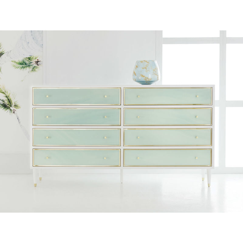 Seaglass Dresser Dimensions 72w x 20d x 40h Features: Brass Drawer Surrounds Printed Acrylic Seaglass Materials: White Painted...