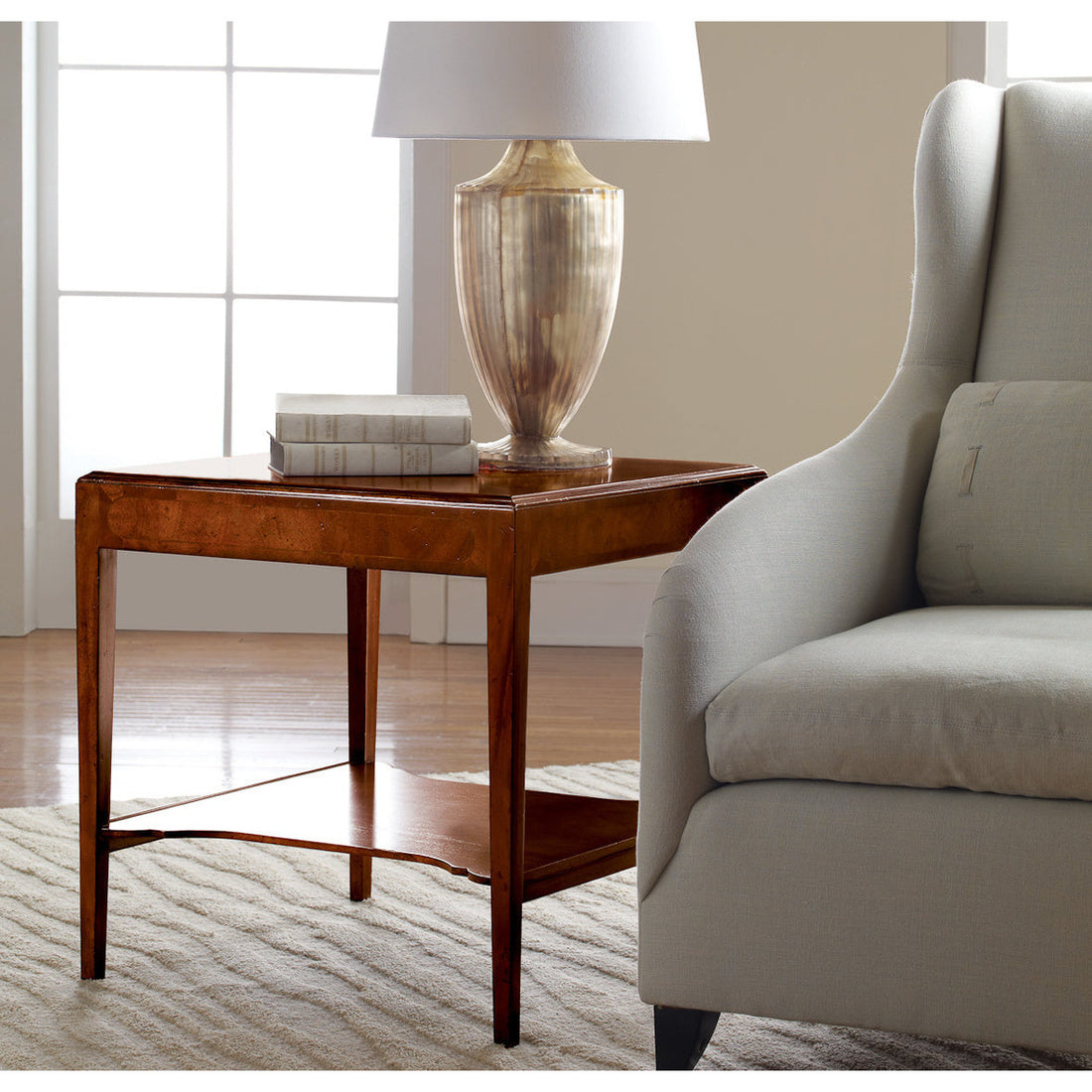 Large mahogany end table with inlay detail and an under-shelf. Satinwood finish 25"w x 25"d...