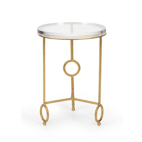 The Yonkers Side Table dons a gold, rope-detailed base an acrylic table top. Gold leaf...