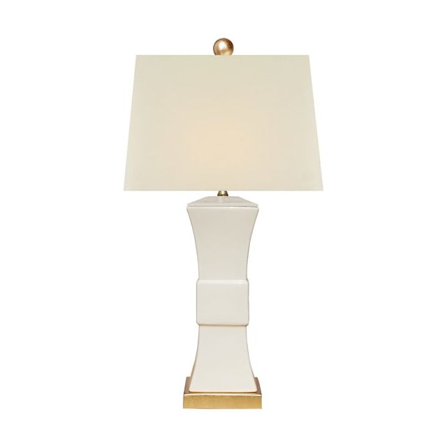 Porcelain Dove White Square Vase Lamp(Gold Leaf Base)27" HIGH 14"WIDELAMP BODY HEIGHT: 15.3"LAMP BASE DPTH...