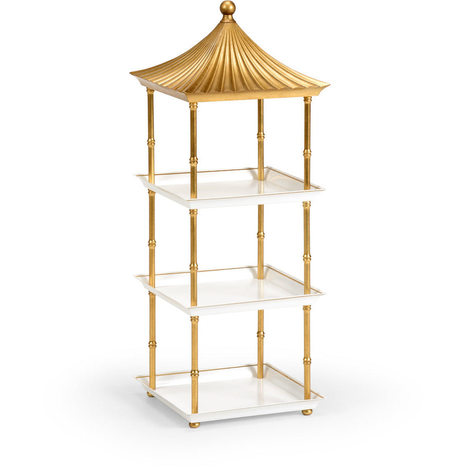 Chelsea House gold and white painted aluminum pagoda shelf. 12"w x 12"d x 33.5"h. Brought to...