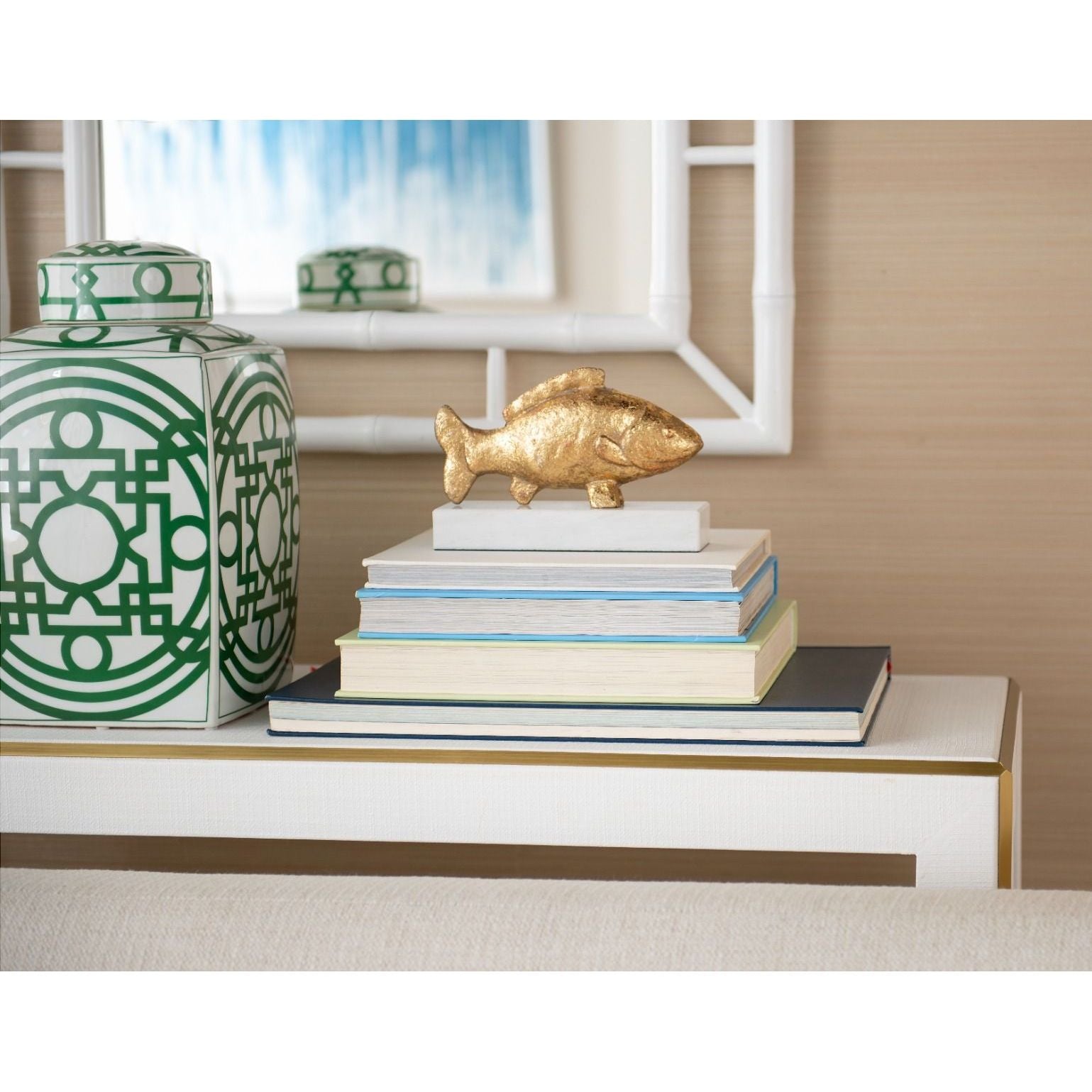 An auspicious gift for your favorite fisherman or the perfect objet d’art to snag for yourself, our Carp Fish Statue cuts a striking figure in gold leaf. In Eastern cultures, a carp represents good luck, success, prosperity, and longevity. This piece stands with dignity and artistic detail atop a fittingly regal white marble base. It is truly a stand-out statue fit for prominent display on a desk, book shelf, or any place which calls for a nautical accent.