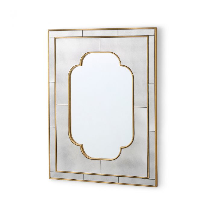 There’s no question that the Cassia Mirror exudes glamour, from its gilded accents to its decorative shape. At its center, the mirror itself is an elongated quatrefoil, combining elements of classic European and Arabic design, while its beveled gold-leafed borders and glass tile frame nod to the opulence of the Art Deco movement. A vintage finish on the outer glass adds to the sense that the Cassia could be an antique from the 1920s, though its overall resplendence certainly transcends time.