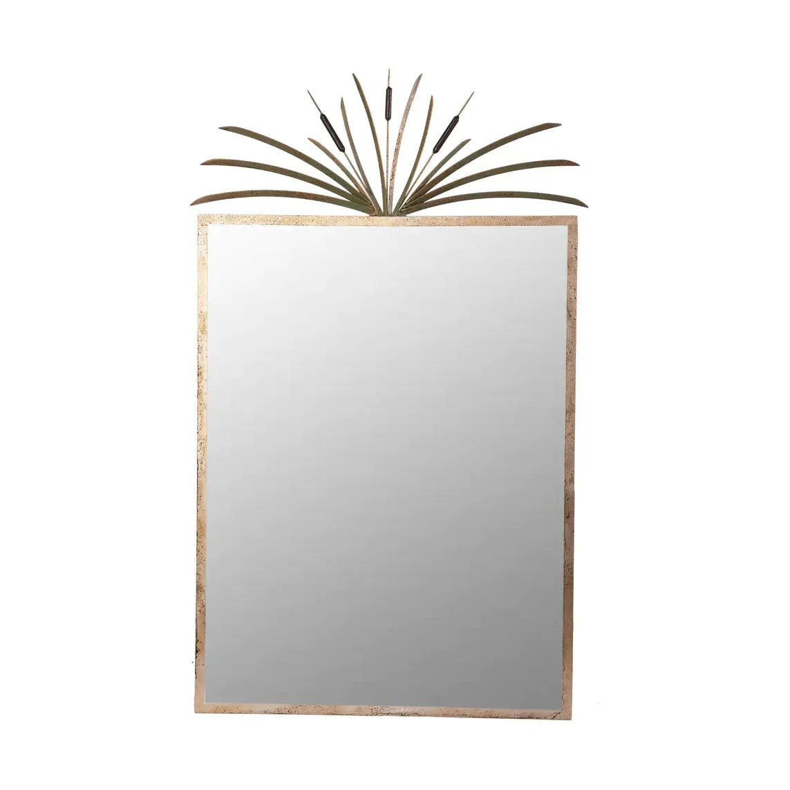 The handcrafted Cat Tail Mirror is beautiful, artisinally-made grass sits on top of a rectangular frame. Shown with darkened bronze cat tails, palmetto grass and antique platinum frame. Contact deGuise for up to 16 different finishes that may be ordered. Lead time is approximately 12-14 weeks.