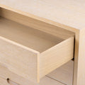 The design of Cora Collection echoes the 1970's in a way which is more luxurious, sophisticated, and contemporary. Crafted from oak and veneers carefully selected for the simplicity of their pattern, the pieces achieve a refined chic that enhances any space without shouting. The cutouts in its front panels are integral to the design and the function serving as both stylish accents as well as drawer pulls. This versatile collection harmonizes with living rooms, family rooms, libraries, or bedrooms.