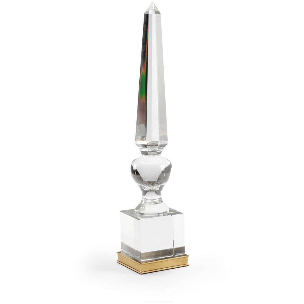 Wildwood hand-cut and polished crystal finial sculpture on a solid brass base. 5.3"w x 5.3"d x 25.5"h. Brought to you by deGuise Interiors.