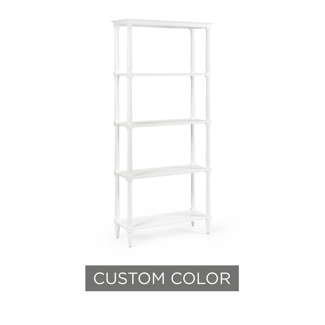 Customize your home with retreat etagere from our Wildwood select collection. This four shelf etagere features a simple design ideal for highlighting your decorative accessories. Add a pop of bold color to create an eye catching look or keep it simple with a neutral color for a more sophisticated feel. Choose your benjamin moore paint color and the possibilites are endless. Please provide color name and number. (Distance between shelves is 16")