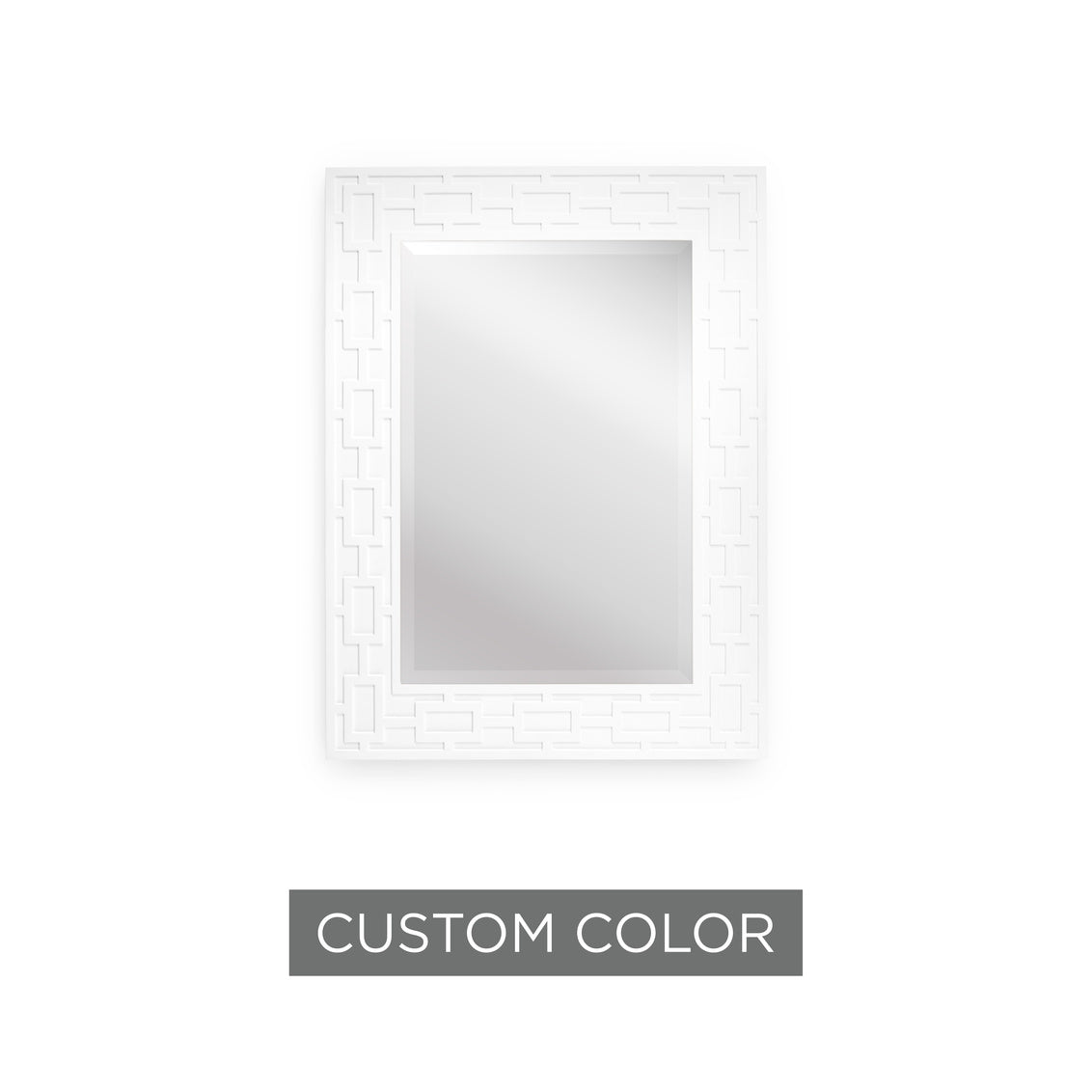 Wildwood select mirror features a beveled mirror and a rectangular frame with an eye catching geometric design. This 40.5"x30' transitional wall mirror is ideal for hanging in any room to add style, depth and dimension. Choose the perfect benjamin moore paint color to create your own vision. Please provide paint color and number.