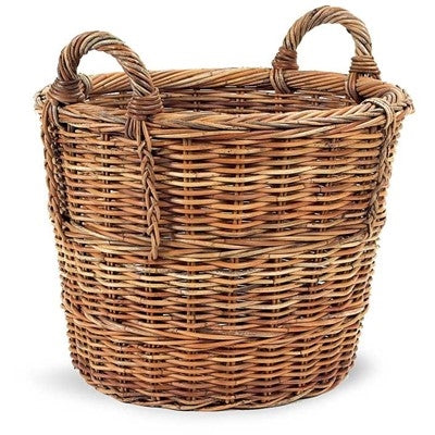 Hand made, harvested rattan basket. Recommended indoor or covered use for longer durability. **The lead time on this item is approximately 10 weeks** Hand made. Rattan. 2 handles. 22 diameter. 17h.