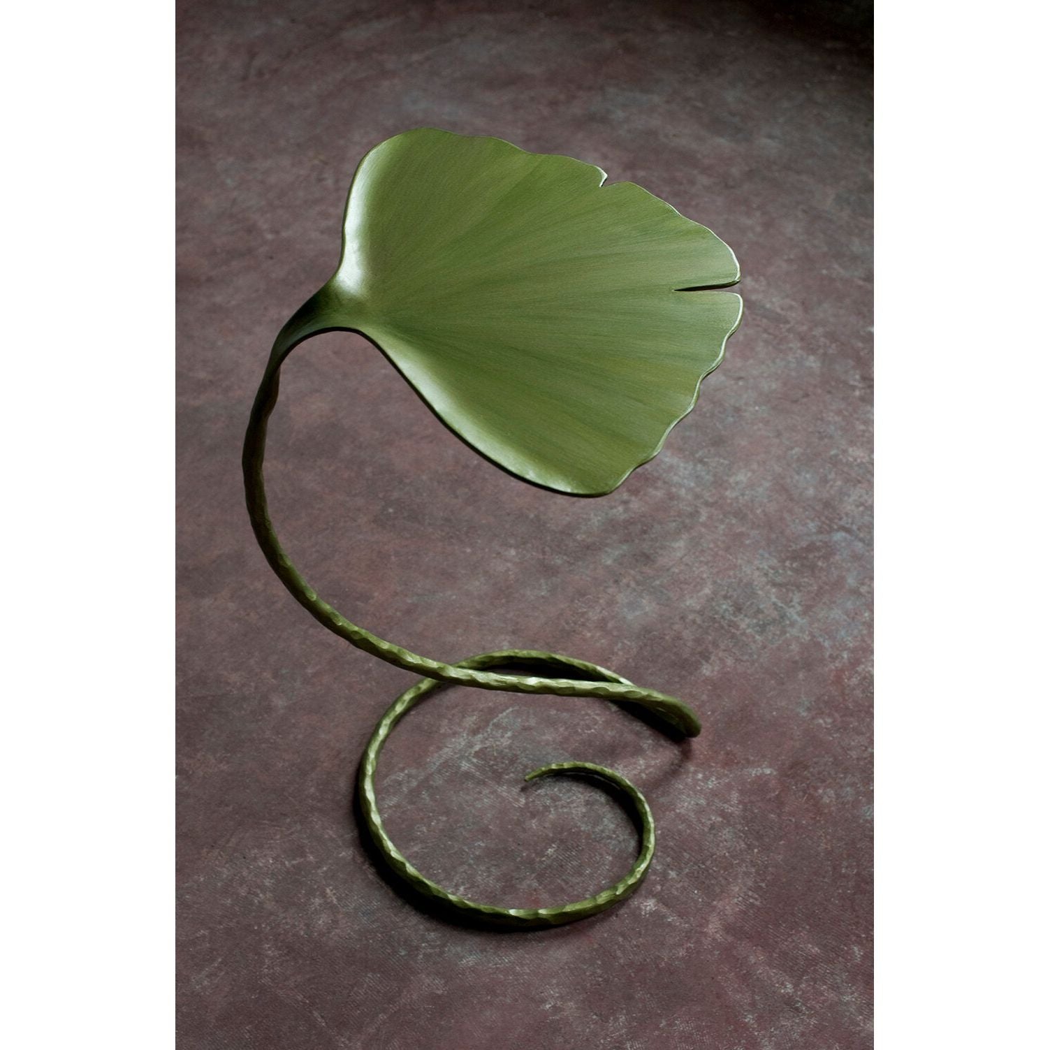 Ginkie Martini Table from the Ginkgo Collection. Hand-crafted out of steel and hand-painted, this organically-shaped side table is inspired by the leaves of the ginkgo tree. A broad fan-shaped leaf serves as the top of the table, while a swirling, coiling stem serves as the supporting base. Contact us for custom finishes. Item is custom made. Please contact us for lead times.