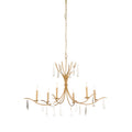 Crafted by Italian artisans, this elegantly tailored chandelier features six graceful swooping arms with candle lights and large drop crystals. The light shimmers off of the crystals for an enchanting effect. Comes with 77" chain.