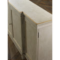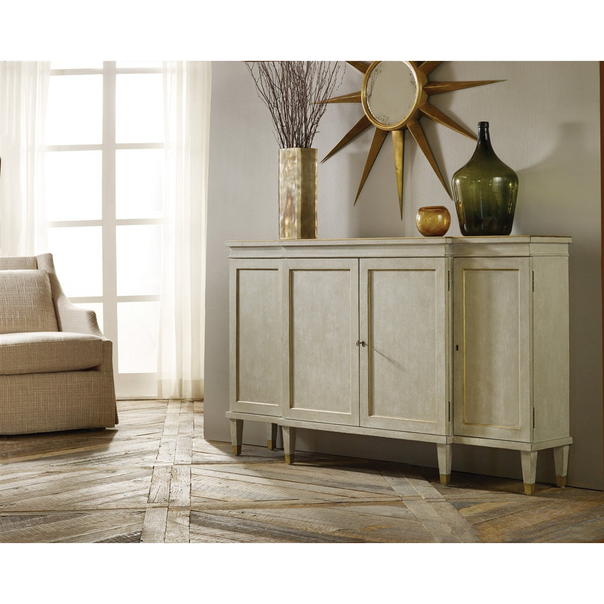 Finished in a contemporary antique grey. With gold leaf trim and a lockable front door, the Gustavian Breakfront Cabinet is a beautiful blend of contemporary and classic styling. Gold leaf trim and lockable front door w 62" h 36.5" d 12.5"