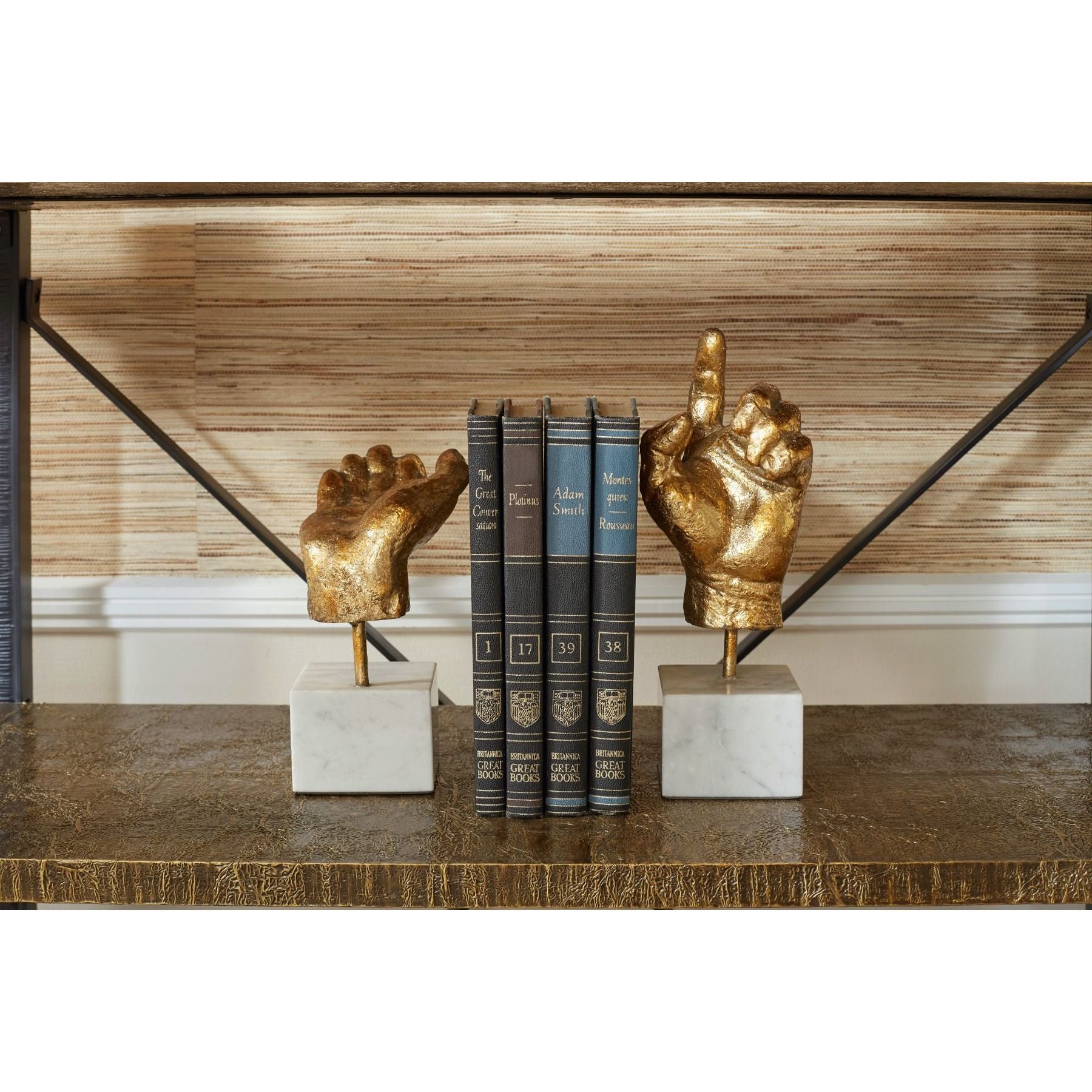 The Hands Statue is a conversation starter. This exquisite pair of hands in gesture, hand-cast and gilded in gold leaf, adds personality and punctuation to any space. Perfect for offices, living rooms, or bookshelves, they become captivating focal points, enhancing your decor.