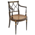 Antique inspired chair with a cane seat and painted detailing. Available in four finishes. Cane seat Painted details Seat height: 20" 20" x 21" x 36" h