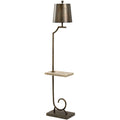 Iron, natural gray marble table top floor lamp with a bronze finish and a scorched bronze metal shade from Wildwood. 13"w x 8.25"d x 60.5"h. 1 bulb. 100 watt max. 3-way switch.