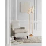 Inspired by Mid-Century Modern lighting, this floor lamp with four linen shades says classic style. Get the luxe look with the gild finish while keeping it simple with linen shades. This lamp is the best of both worlds. Height: 67" Width/Extension: 16.75" Base: 10" Round Shade Details: 3.5" x 6" x 8" Socket: 4 - E12 Candelabra with Line Switch Wattage: 4 - 40B