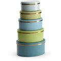 Wildwood set of five oval, faux crocodile skin boxes in blue and green finishes. 10.8"w x 8"d x 5"h. Brought to you by deGuise Interiors.