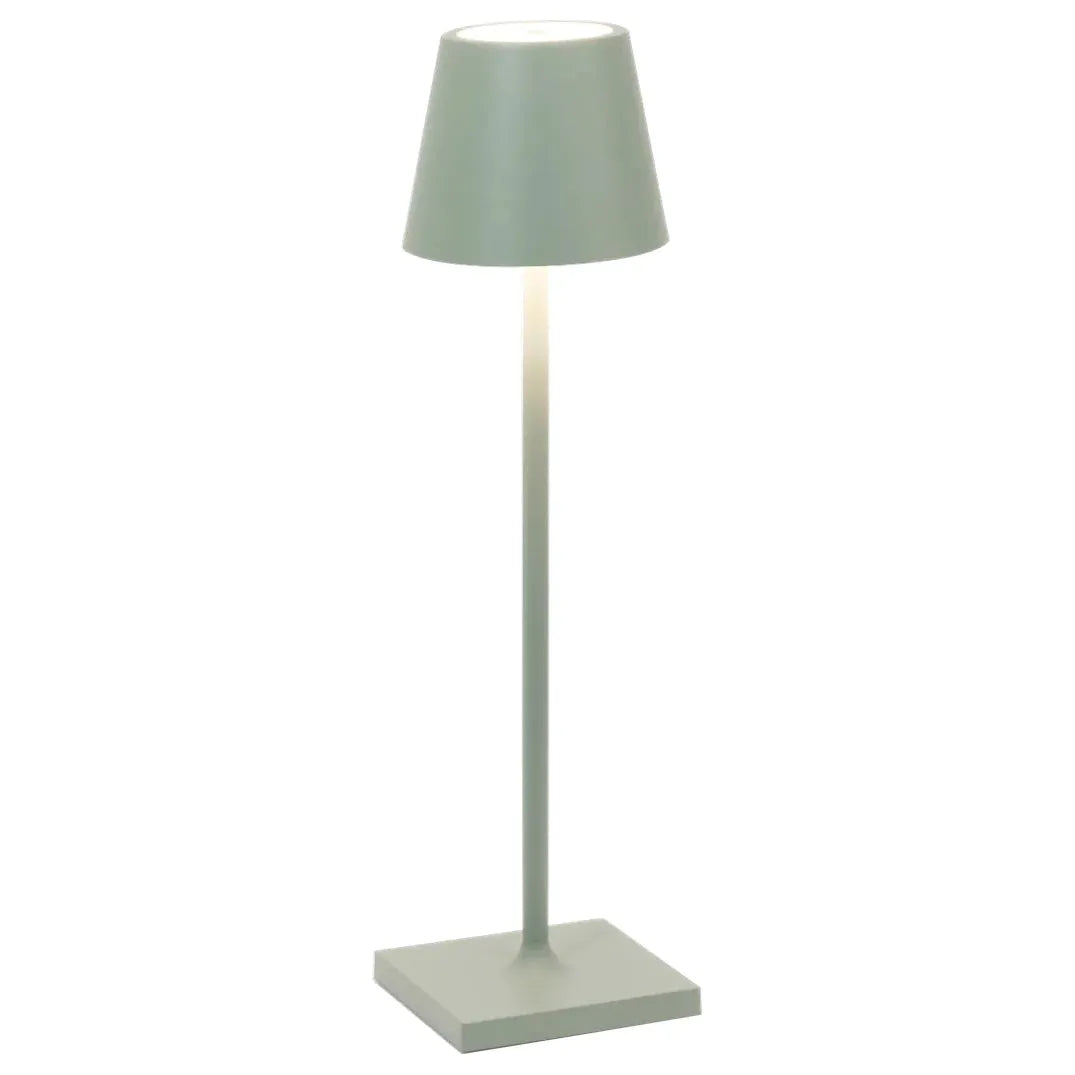 Includes contact charging base, Rechargeable and replaceable lithium-Ion battery pack lasts approximately 400 charging cycles. Order replacement battery packs from Zafferano America., Battery lasts about 6-7 hours at full power, Charging time is 3-4 hours, Suitable for outdoor use (powder-coated finishes only), Plug not included, Polycarbonate diffuser, Full-range touch dimming