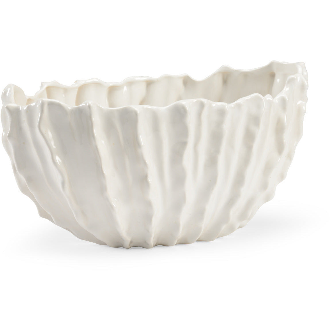 White ribbed porcelain bowl from Chelsea House. 16.5'w x 9"d x 8"h. Brought to you by deGuise Interiors.