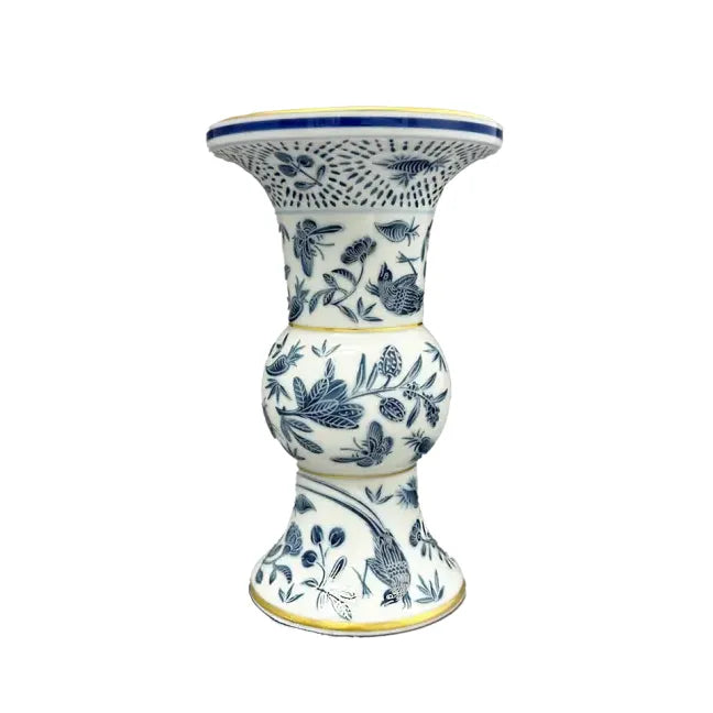 This is a gorgeous table vase. Licensed product of Historic Charleston. The Sacred Butterfly was a Chinese export pattern of about 1800 and was intended for those who admired the sophistication of placing traditional Chinese motifs of birds, butterflies and flowers on European shapes. The marriage of shape and design was a success and was reproduced in English china of about 1800-1810. Our reproductions are based on originals in Historic Charleston. Dishwasher safe.
