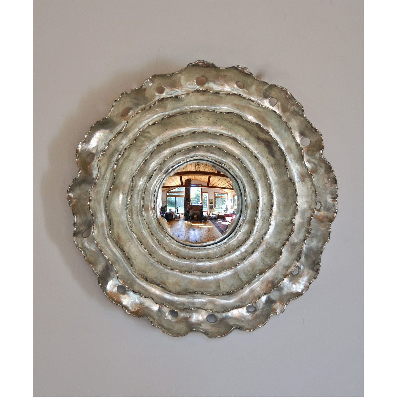 This stunning, deeply dimensional sculpture is ever so reflective in gold leaf or silver leaf with a convex mirror. Please contact us for custom color options. **This product has a lead time of 6-8 weeks** 21" dia.