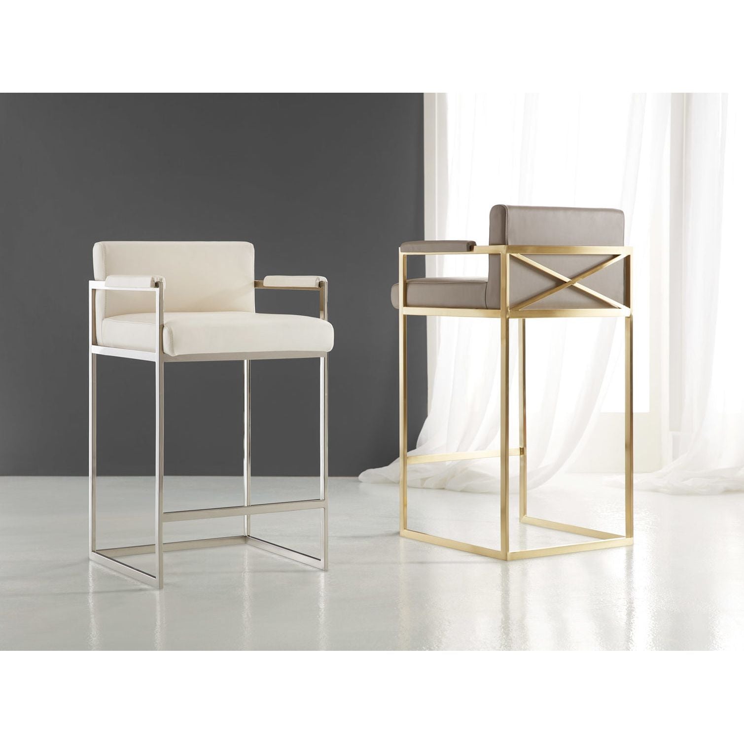 X Counter Stools-Brass and Grey